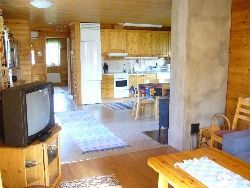 I storstugan finns kök och vardagsrumsdel i vinkel. Köket har diskmaskin, mikro,