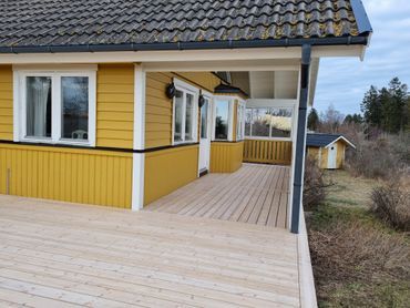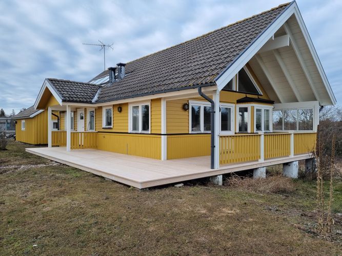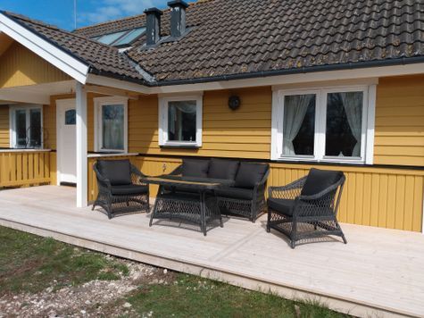 All-year house for 4 persons. Veranda on two sides. The house is situated on a private property surrounded with fences. An additional smaller house with two extra beds is situated on the same property and can be booked separately in advance.