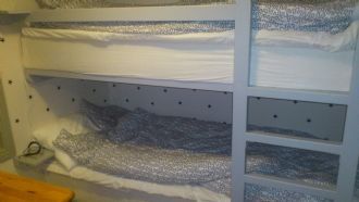 3 Sovrum , varav 2 är sovloft och ett är med våningssäng, alla sängar med tjocka resårmadrasser.