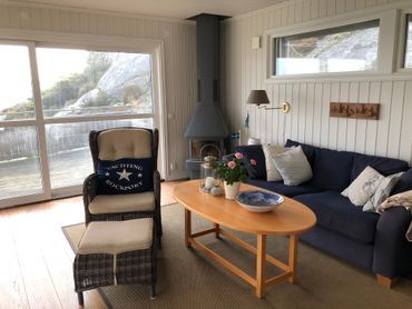 75 kvm. 3 stora sovrum med 6 sängar. Bad: Dusch, tvättmaskin och Cinderella förbränningstoalett. Kök: Diskmaskin, kyl/frys, spis. Matplats til 8 personer. Vardagsrum: Öppen spis, soffagrupp og TV.