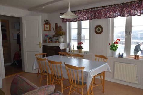 Välutrustat lantkök/allrum med kakelugn. Platt-TV, liten hembio, DVD/Bluray, CD/Stereo, micro-ugn, golvdisk, induktions-spis med varmluftsugn, Kyl/Frys, Mocca-Master kaffebryggare och full utrustning för matlagning.
