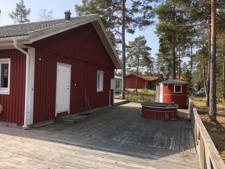 Koppla av på den stora träterrassen med utsikt över havet. Och kanske ett besök i den vedeldade bastun - eller vill du hellre ta ett dopp i bubbelpoolen? Du kan njuta av en vacker solnedgång på den gamla färjepiren. Det är också en populär mötesplats för simning. Och om du föredrar det lite lugnare finns det många små, undangömda badvikar på ön. Välkommen till Villa Sommartider på Oknö!