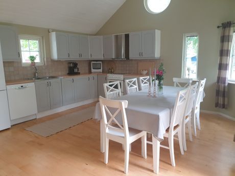 Fin stuga med öppen planlösning i Norje Boke med 3 rum och kök. Ca 85 kvm, byggd 2006.