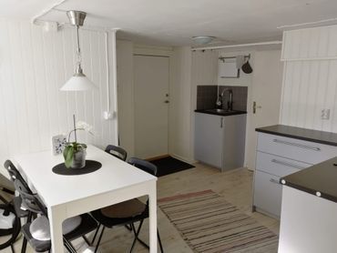 Lägenheten har egen ingång och är utrustad för 4-5 personer. Ett sovrum/TV-rum med bäddsoffa (140cm) och familjevåningssäng (120cm + 90cm) samt TV. Kök med diskmaskin, micro, induktionsspis, varmluftsugn. Badrum med golvvärme, dusch, WC och tvättmaskin. Egen uteplats med grill. Tillgång till Internet och parkeringsplats.