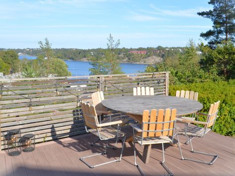 Exklusivt arkitektritat hus med pool och underbar utsikt över Torsbyfjärden. Den stora och högt belägna tomten är inbäddad i härlig grönska med altaner på 3 sidor om huset, samt ett stort pooldäck. Fantastiskt läge med närhet till natur, havsbad, golfbana och utflykter ut i Skärgården eller till Stockholm. Varför inte göra en kombo och ta nya pendelbåten (ca 15 minuters promenad från huset och en timmes båtresa) för att besöka Stockholm. Med bil eller buss når ni Stockholm på ca 20 minuter.