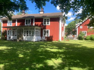 I byn Löa hyr vi ut ett hus på vår gård, i nära anslutning till vårt hus, med tillgång till egen del av trädgården och uteplats. På gården bor frigående höns, katter och hundar.