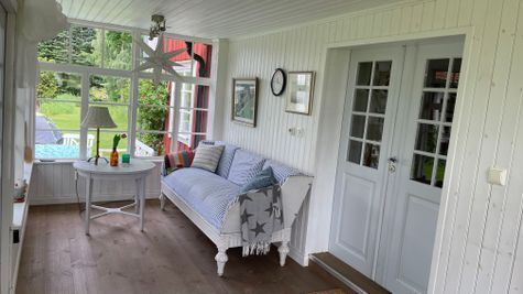 Rymligt hus med WiFi, hall, stort kök, vardagsrum, tre sovrum, badrum (dusch + toalett) , tvättstuga, separat toalett och glasveranda. (Glasverandan är oisolerad och värms ej upp vintertid.)