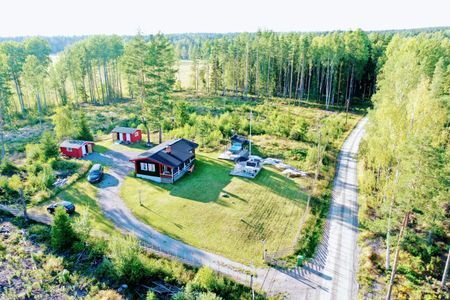Sjönära och modernt fritidshus med toalett, dusch och egen badbrygga. Stugan är utrustad med modernt kök med köksutrustning för matlagning inklusive diskmaskin. Altan och ett stort trädäck med utekök med gasol och kolgrill gör att man kan laga mat och njuta utomhus. Ytterligare ett stort soldäck med utedusch och spabad sätter extra guldkant på tillvaron.