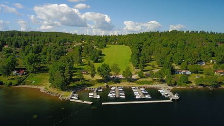 Ner till vår lilla hamn/badplats, som man ser från huset, är det ca 300m.
