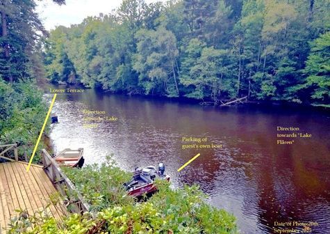 Trädgården är utformad av en landskapsarkitekt och är ca 800m2. Den innehåller långa rader, den längsta 45 meter, av formklippta träd, buskar och blommor som vackert omgärdar tomten. Utomordentligt fint fiske, framförallt är gös rikligt förekommande, i närliggande Furen som lätt nås med båt. Som med allt fiske i Sverige skall lokala föreskrifter följas och nödvändiga licenser införskaffas (t ex fiskekort) och detta är alltid den enskilde fiskarens ansvar. Observera att fiske i Årån ej är tillåtet.