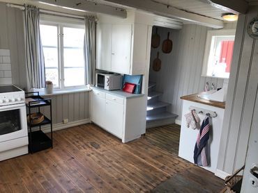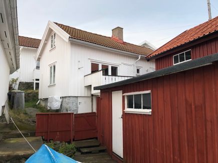 Charmig fiskarstuga på Gullholmen. Havsutsikt och altan med sol från morgon till tidig eftermiddag. Så kallat enkelhus med enkelt kök och vardagsrum i bottenplan och två sovrum med fyra bäddar en trappa upp. Bäddsoffa i vardagsrummet.Toalett med sk "Stockholmsdusch". Tvättmaskin.