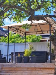 Ett rymligt badrum med dusch och tvättmaskin. Lite sällskapsspel finns. Man har egen ingång. Möblerad uteplats med grillmöjligheter och egen parkering. Trädgård delas med hyresvärd.