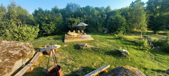 Huset ligger på en lummig stor tomt med gott om plats för sommarlekar, kubb finns.