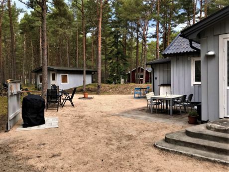 Avkopplande och naturnära boende direkt i tallskogen, 500 m till den fantastiska, 3 mil långa orörda sandstranden. Plats finns för mindre husvagn eller husbil. Annars 2 platser för bil, den ena under tak.