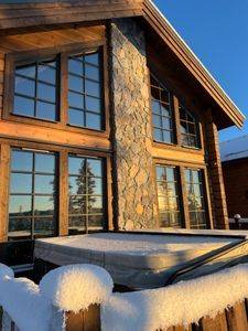 Med perfekt sydvästligt solläge, och panoramautsikt över bergstopparna längsmed den Norska gränsen kan ni njuta framför elden i brasan, likväl som från den rymliga bubbelpoolen med plats för upp till 8 personer.