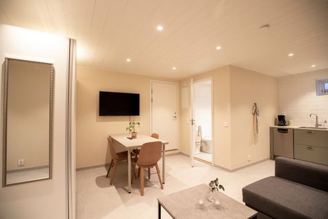 Helt nybyggd lägenhet med 2,3 m i takhöjd, egen ingång med kodlås, uteplats och parkering på gatan utanför. Säng som är 160 cm bred (sovalkov med draperi) och en bäddsoffa som blir 140 cm bred.