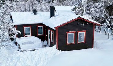 Stugan består av hall med torkskåp, välutrustat kök, diskmaskin finns, med fin matplats och ett stort mysigt allrum med braskamin, ved ingår. Fiber och WiFi finns, även en skrivare vid behov. Smart-TV.
