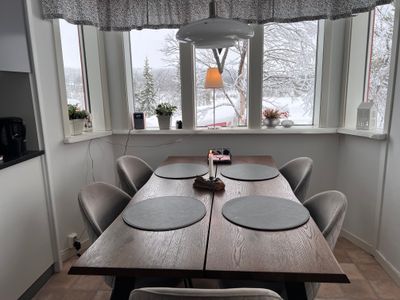 Fristående bastu (el) med en mysig relaxdel. Härifrån har du utsikt mot backarna på Skalet.