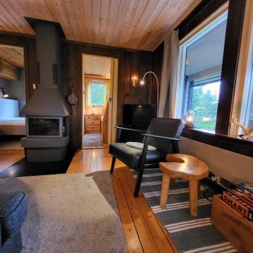Storstugan rymmer kök (ej diskmaskin - vilket också framgår av "Bekvämligheter - köksutrustning"), matplats, kamin, soffgrupp, tv med grundutbud kanaler samt Netflix, dvd. Parkeringen rymmer 3 bilar. Uttag för motorvärmare finns. Altanen är belägen i sydväst och från den stora naturtomten är det vy över Storhogna, Varggransfjället och Vemdalsskalet. Tillgängligt fiber med Wifi-anslutning i stugan med ett s.k. fritidshusabonnemang som standard 2 Mbit. Som gäst kan man själv bekosta extra surf via globalconnect.