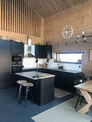 • Öppen planlösning med fullt utrustat modernt kök (diskmaskin, kyl/frys, ugn, mikro, kaffebryggare, köksö). Barnstol finns ej.