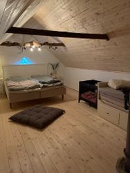 Du bor i ett stort rymligt hus med 3 sovrum och totalt 8 bäddar. Möjlighet till fler extra bäddar finns.