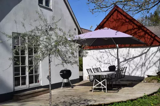 Förutom att ni har tillgång till hela det fristående och fullutrustade gästhuset har ni även en egen del av trädgården med uteplats/trädäck samt "innergård" med sittplatser och utsikt mot norr.