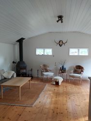 Huvudbyggnaden är på 75 kvm, med modernt kök, matsal och vardagsrum (med