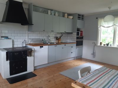 Björnhuset har ett stort kombinerat kök och vardagsrum (där det får plats ett långbord). Det finns åtta bäddar i huset - ett sovrum med dubbelsäng, en våningssäng i en alkov i anslutning till vardagsrummet samt ett mysigt loft med fyra sängar. Dessutom finns en liten friggebod (utan el, men med lampor) med två sängar alldeles utanför huset. Den varma årstiden finns sålunda 10 bäddar. När det är kallare finns det 8 bäddar. Huset är fräscht och mysigt. Allt man kan behöva finns. Badrummet som har äldre standard har vi inte hunnit renovera, men allt är rent. Det finns utemöbler och grill.