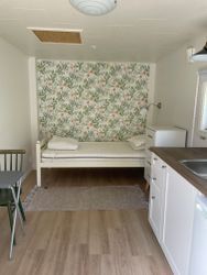 Rum 2 med enkelsäng, rinnande vatten, mikrovågsugn och kyl.