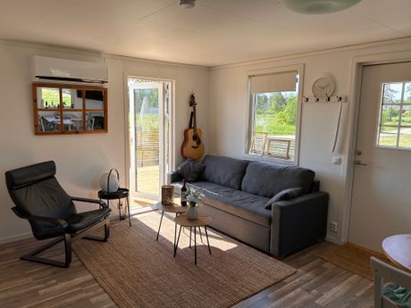 Stugan är inredd med omtanke och erbjuder gott om plats för alla: