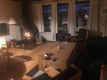 Det fullt utrustade köket har allt du behöver för att laga dina måltider: diskmaskin, kyl, frys, ugn, spis och micro. I allrummet finns en soffgrupp för fem personer, en mysig braskamin och TV för avkoppling efter en dag på fjället.