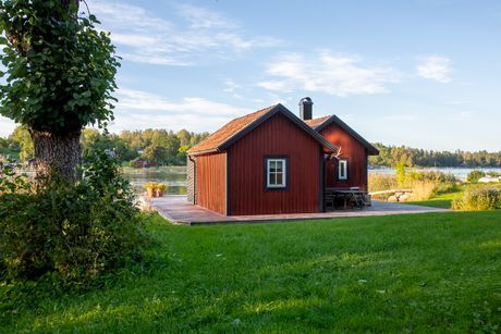 Stugan är ca 90 kvadratmeter och har allt man behöver för en mysig sommar vecka. Det finns sju bäddar för vuxna och två specifikt för mindre barn, se detaljer nedan. Det finns ett stort däck vid vattnet som har sol morgon som kväll. Här finns utemöbler och en klotgrill från weber för mysiga middagar under sommarkvällar, solstolar för lata dagar eller en perfekt plats för yoga i solen.