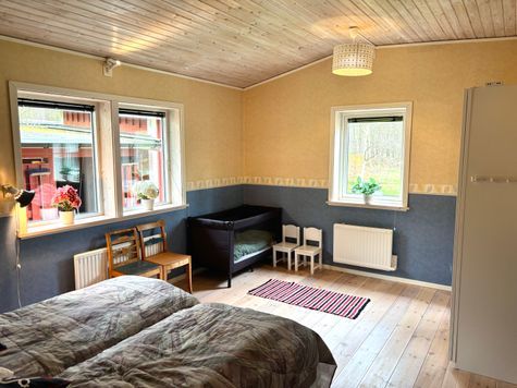 Detta välskötta året runt boende erbjuder allt du behöver för en avkopplande semester. Här finns ett ljust, vinterbonat uterum med en härlig utsikt över trädgården med all dess grönska. Det finns totalt 6 bäddar fördelat på 3 sovrum med två bäddar i respektive rum. Det största sovrummet har dessutom en resesäng för barn och en barngrind in till rummet. Det finns ett badrum med dusch, wc och tvättmaskin. Ute på den stora altanen kan du njuta av solen hela dagen, omgiven av grönska och stillhet.