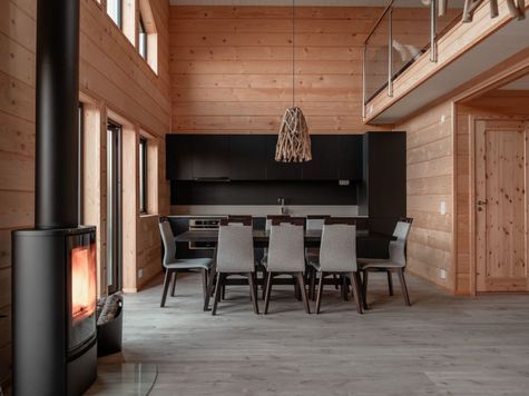 -Hög takhöjd, vedeldad kamin och stor bastu för värme efter backen