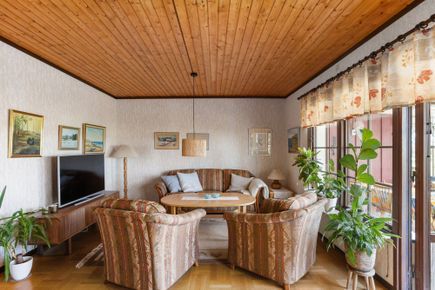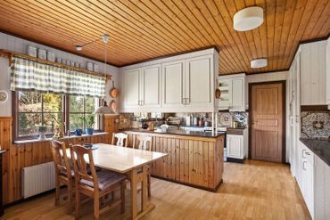 Alla utrymmen ligger på ett plan. I anslutning till vardagsrummet finns en rymlig inglasad veranda samt en terrass. På den stora tomten finns en vedeldad finsk bastu med plats för fyra till sex personer. Genom träden kan man upptäcka havet och lyssna på måsarnas sång.