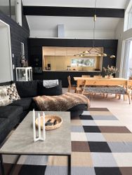 Vardagsrum och kök i öppen planlösning