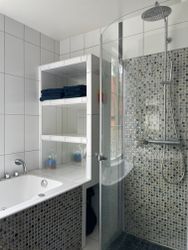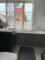 Lägenheten har också ett vackert badrum med bubbelbadkar, samt ett rymligt kök som är fullt utrustat med alla nödvändiga apparater och bekvämligheter.