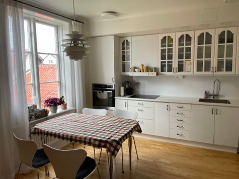 Exklusiv, modern lägenhet belägen bara 70 meter från Almedalen. det perfekta läget för dig som vill ha nära till händelsernas hjärta. Från denna vackert designade bostad, har du utsikt över havet och Visbys takåsar.