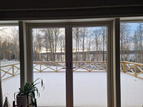 Tvättmaskin finns i badrummet och en stor alltan med utsikt över Unden.