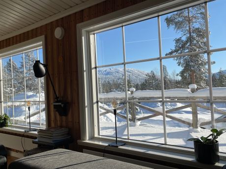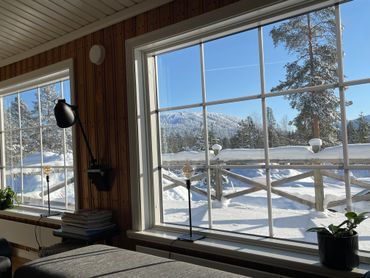 Det finns en stor härlig och solig terass med perfekt solläge. Här kan du njuta av den otroligt vackra utsikten över fjället i bästa solläget.