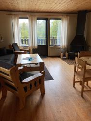 Storstuga med bäddsoffa om två bäddar, braskamin, kabel-tv, radio.