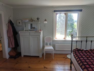 På ovanvåningen finns fyra sovrum varav tre med dubbelsängar. Ett sovrum är barnrum med två/tre sovplatser.