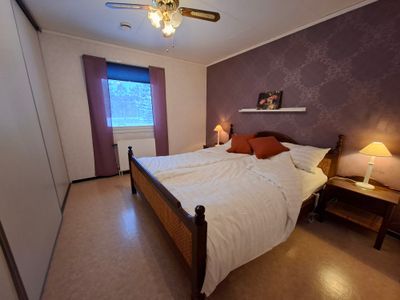 Denna rymliga enplans svenska villa/bungalow erbjuder bekvämt boende för familjer eller vängrupper. Det finns fyra sovrum: