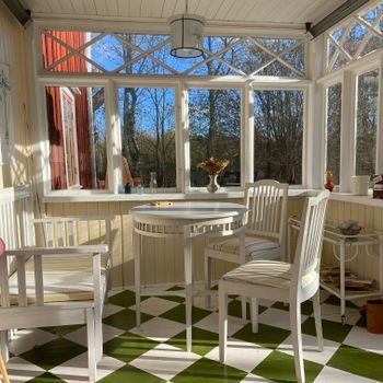 Samt en glasveranda där kaffet