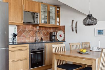 Komplett kök med kyl, frys, micro, ugn, spis, vattenkokare, kaffebryggare m.m.