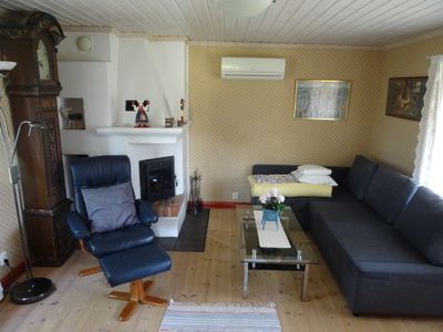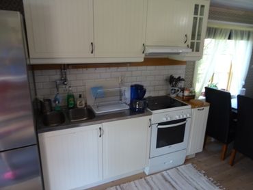 Stugan har en liten hall, vardagsrum med bäddsoffa(2 sovplatser), Smart-tv , kök med spis, micro, kyl, frys, kaffebryggare, vattenkokare, smörgåsgrill och brödrost. Matbord med 4 stolar. I sovrummet finns en 180cm säng och en 90cm säng samt en barnsäng. Täcke och kudde finns till varje säng. Dusch och toalett har modern standard. Terass med utemöbler och en grill. Cyklar samt roddbåt finns att låna.