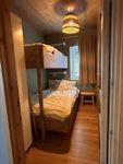Ett sovrum med dubbelsäng (160cm) och två sovrum med våningssängar (nederslaf 120cm och överslaf 80cm).