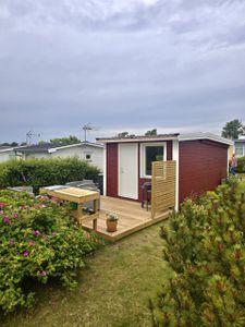 Stuga där modern standard möter varm och genuin stugcharm. Ett rofyllt boende på Skrea Strand – idealiskt för både avkoppling och semesterliv.