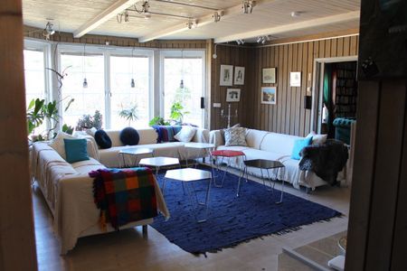 Här kan upp till 14 personer bo. Vi har totalt 4 sovrum, 1 vardagsrum, 1 bibliotek, 1 stort kök, 2 badrum, tvättrum, mm.