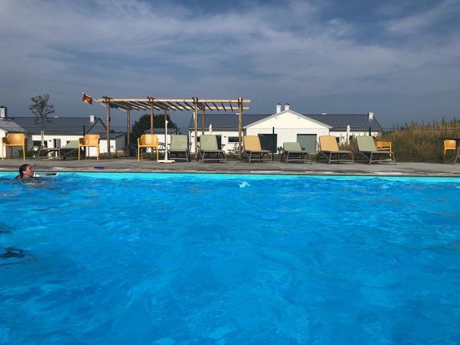 Poolområde: Storlek på poolen 6 x 12 meter, uppvärmd. Nedgång i poolen via trappa som löper utmed kortsidan. Runt poolen ett ”soldäck” med solsängar. Staket finns runt poolområdet samt skydd över själva poolen. Mellan 15 maj och 15 september är poolområdet öppet. Öppettid kl 8-20.